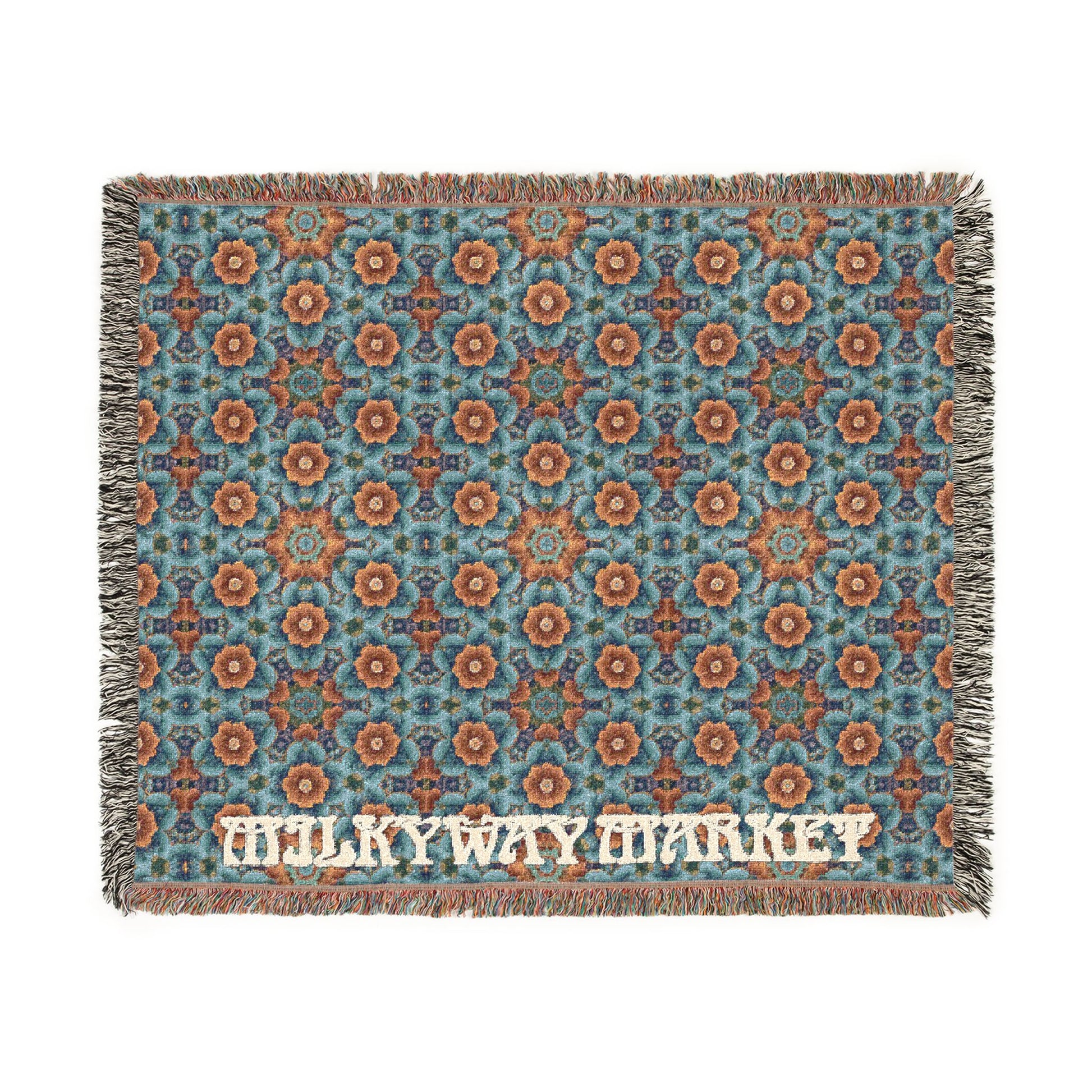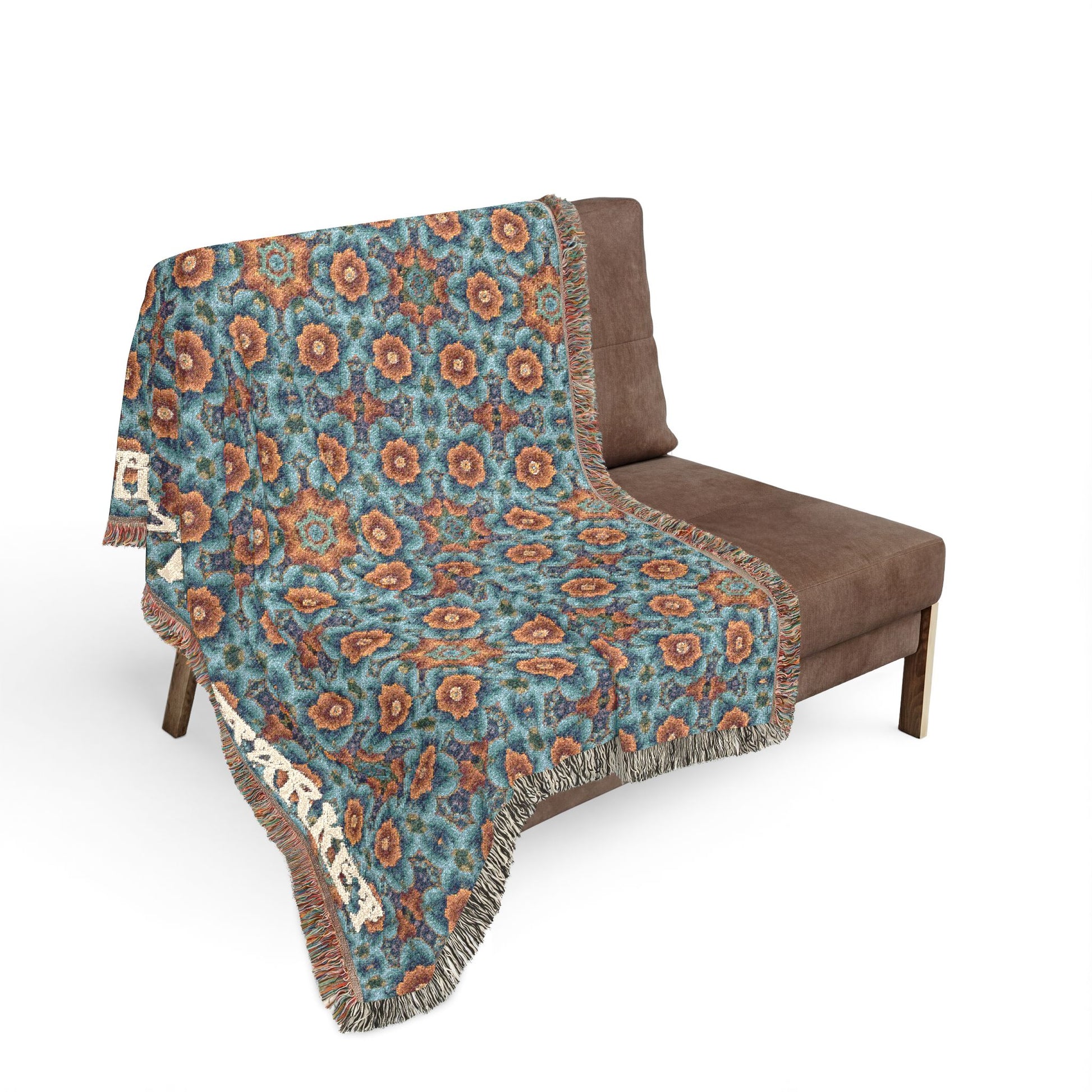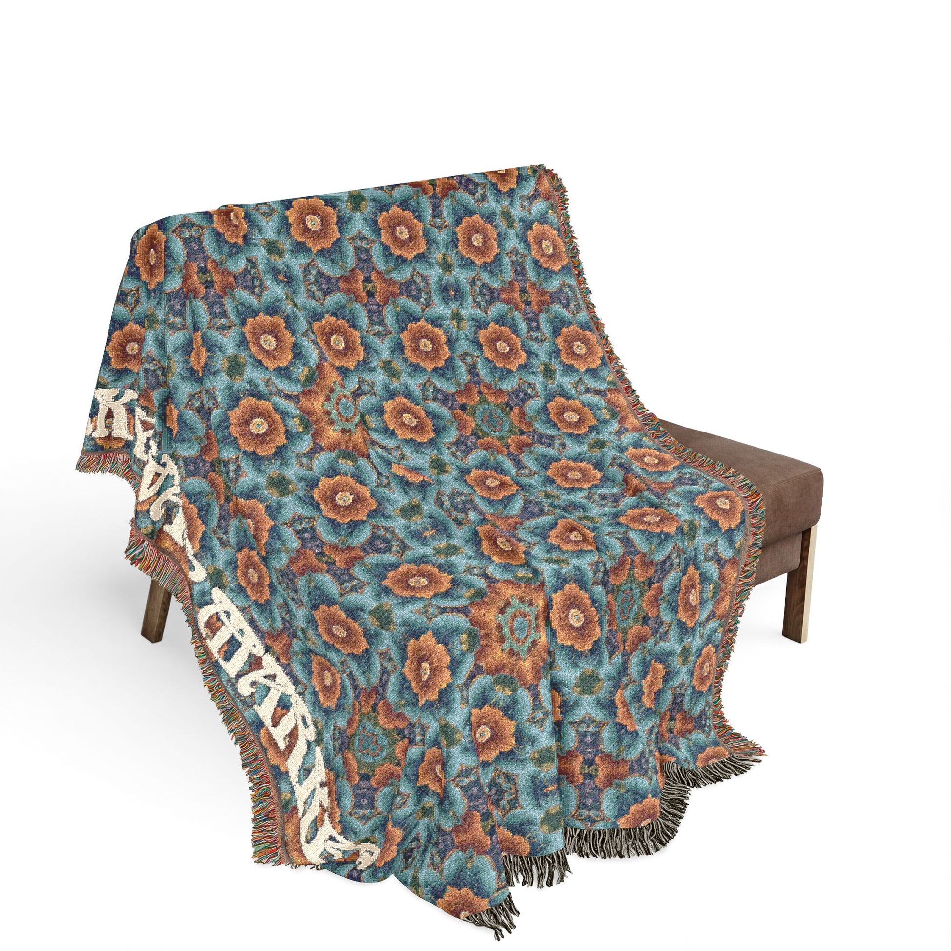 A richly patterned woven blanket that brings handcrafted warmth and vintage character into any cozy corner. The tight 100% cotton weave creates a soft, durable fabric with colorful fringed edges and visible woven threads that celebrate texture. Choose the Artwork variant for bold, graphic color blocks that stay crisp and vibrant, or the Photo variant to preserve subtle gradients and photographic detail. Available in three sizes, this blanket layers easily over sofas, footboards, or at the end of a bed — its timeless geometric motif and earthy palette add an instant sense of lived-in comfort and curated style. Note: mockups are indicative; the real weave and color depth are best experienced in person.